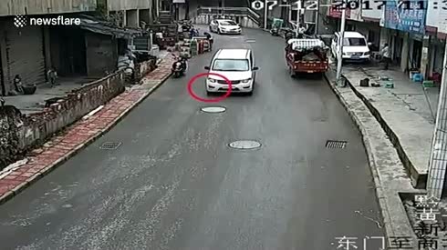 这算谁的?车辆压飞玻璃瓶打到小孩头部