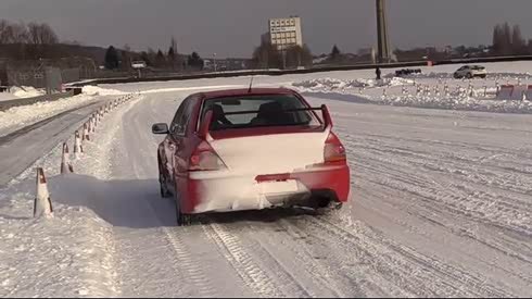 不用踩刹车 三菱EVO雪地赛道秀漂移