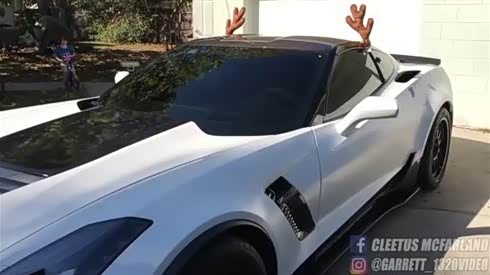 实在太萌了 车友在车顶加装圣诞节鹿角