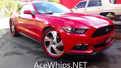 太夸张了吧 红色Mustang改装24寸大轮圈