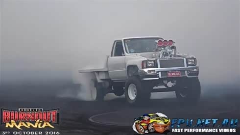 烧完一条轮胎 看改装皮卡车疯狂烧胎