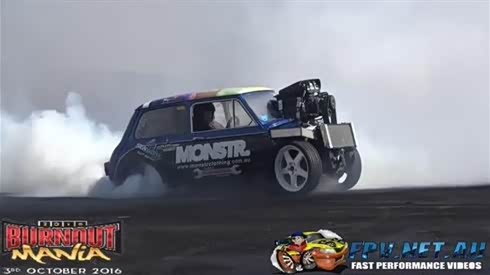 面目全非 改装怪兽MINI疯狂烧胎表演