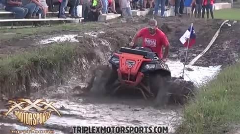 看谁马力足 钢管车和大脚车泥沟脱困