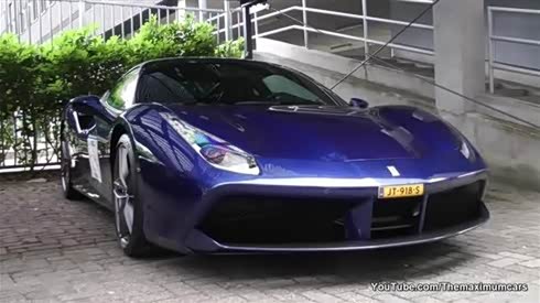 看腻了红色?街拍宝石蓝色法拉利488