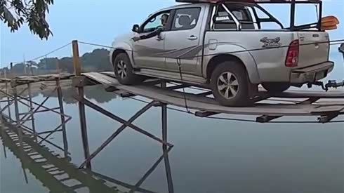 司机胆子真不小 实拍皮卡车过软木桥
