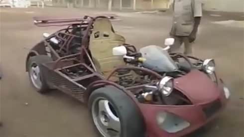 太有才了!非洲小伙自制车 照样得瑟