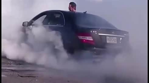 有钱任性!小土豪烧胎差点烧毁梅赛德斯 C63 AMG