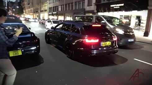 引路人围观 黑色改装奥迪RS 6夜游闹市