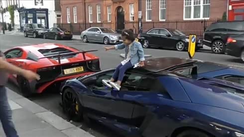 任性小萝莉 小女孩非要坐超跑车顶合影