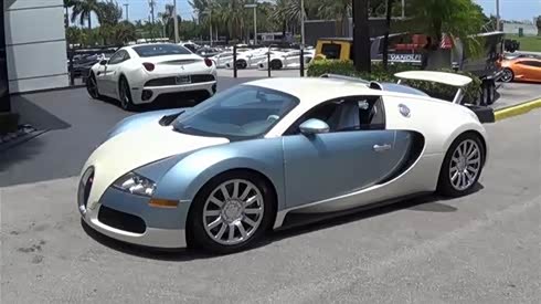 罕见蓝白涂装 街拍1000马力布加迪威航