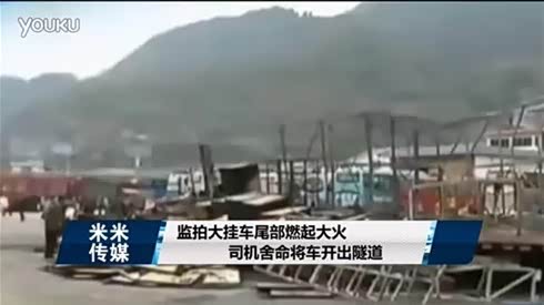 监拍大挂车尾部燃起大火 司机舍命将车开出隧道_高清