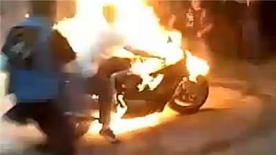 恐怖 燃烧的液化气罐 差点把大巴车炸飞