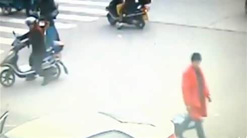 监控实拍:送妹子回家 倒霉撞到摩托男...