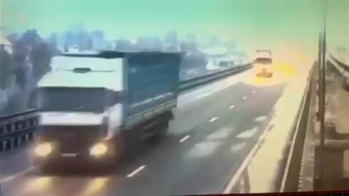 监控实拍:又见幸运帝 小车高速追尾集装箱拖头车 恐怖