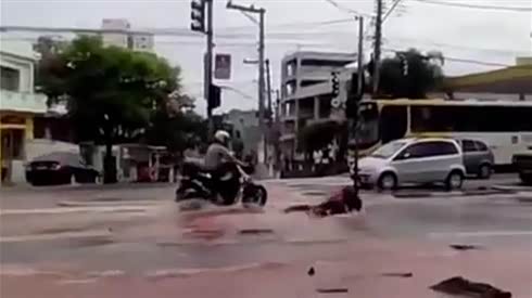 太鲁莽!实拍台湾两摩托车弯道猛撞