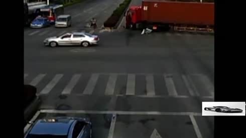 监控实拍:电车女被卷大货车底 机智滚翻 死里逃生...