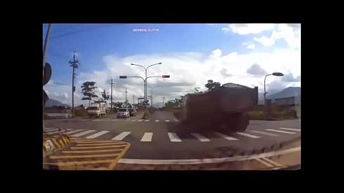 太恐怖 渣土车闯红灯 撞碎摩托车