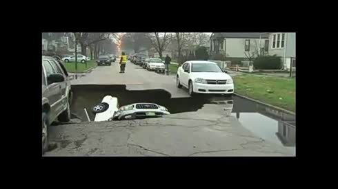 实拍马路突然塌陷大坑 三辆车坠落其中