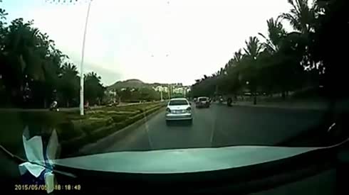 监控实拍:两学生摩托飙车 重重摔在地上 太惊险...