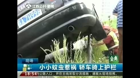笑死了!奥迪A80为躲飞虫 骑到护栏上