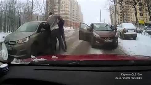 监控实拍:雪地路滑 二货司机违规撞车 还下车打人...