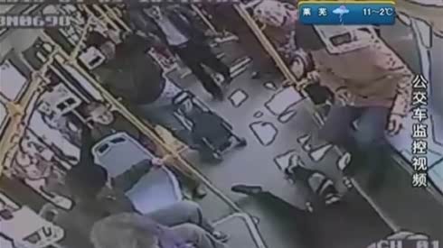 监控实拍:高手!大妈公车上摔倒碰瓷 乘客帮忙反被骂