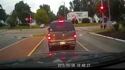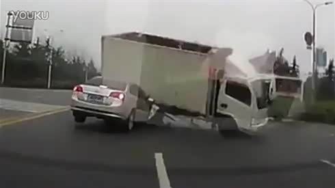 这是货柜车的不对吧?货柜车强行转弯 被轿车顶飞