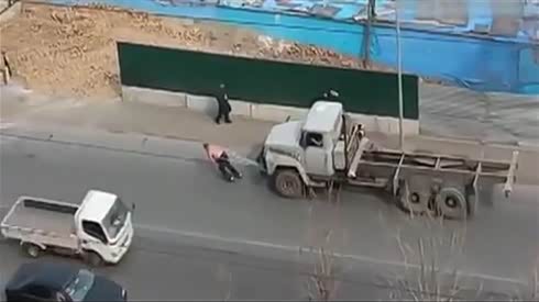 监控实拍:什么仇什么怨 大卡车之间的决斗
