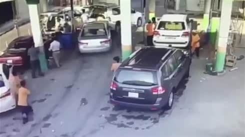 飞来横祸 监拍白衣男子被失控汽车撞飞