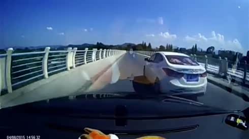 监控实拍:路遇二货司机 我怎么超车他就怎么别...