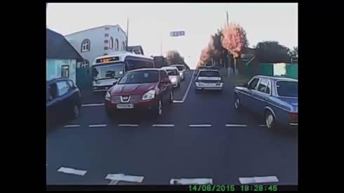 人渣 轿车违规掉头害惨摩托车 撒腿就跑