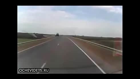 实拍小汽车高速超车遭对向车道货车撞成两截