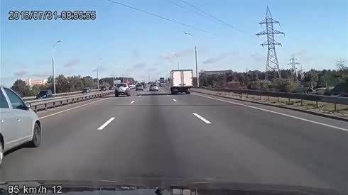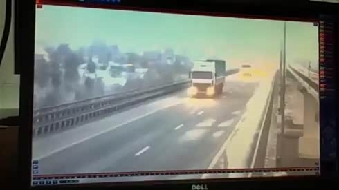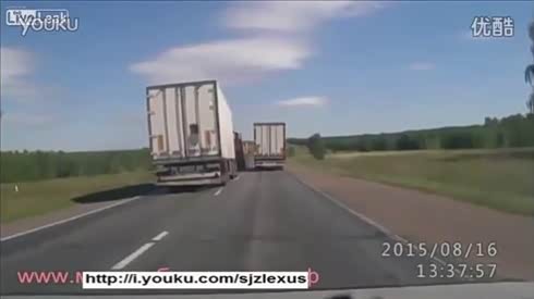 监控实拍:路遇飞来的大长货柜车 吓尿了...