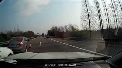 监控实拍:高速超车道急刹车 险酿惨祸...