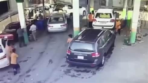 监控器下的恐怖车祸-巴士失控撞车挤死路人