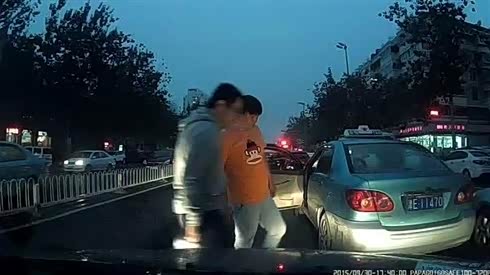 无良出租车司机强行变道引发事故