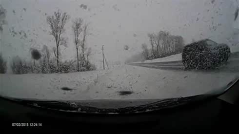 监控实拍:战斗民族的雪地公路 司机随时在战斗...