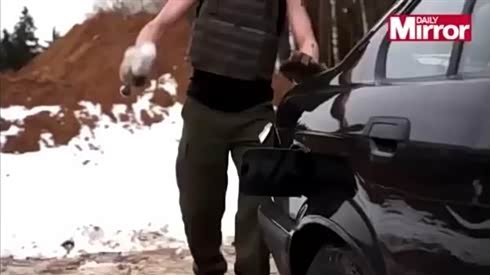 实拍 男子暴力摧毁一台老宝马7系
