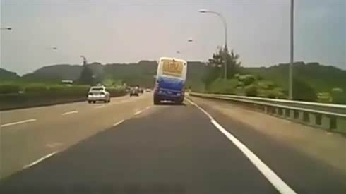 监控实拍:又见摇摆哥 高速大巴S型漂移惨烈侧翻,,,