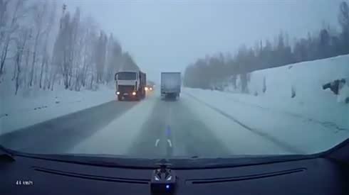 监控实拍:雪地恐怖!俄罗斯大卡车与货车对撞 满地碎片,,,