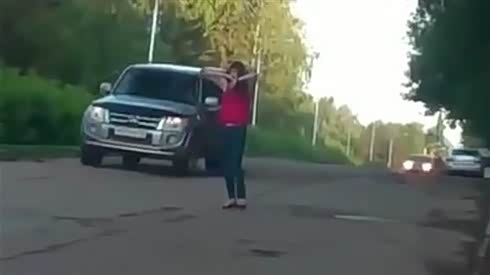 监控实拍:奇葩!女蛇精病半路拦车遭掌掴
