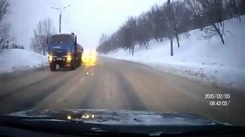 监控实拍:路遇小车雪地失控漂移 直接撞向对方车道...