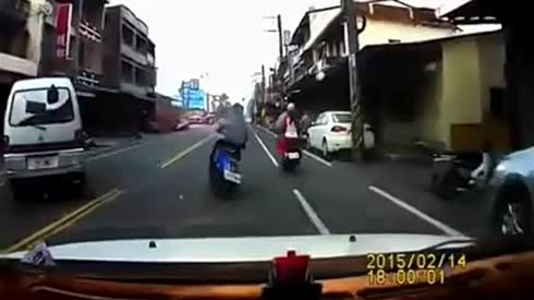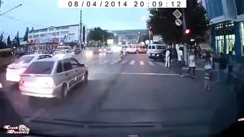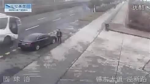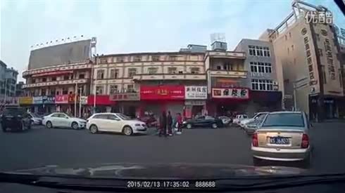 监控实拍:路遇二货司机 撞了一群人...