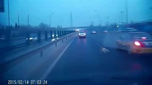 监控实拍:快车道上突然窜出一条狗 司机躲闪失控大甩尾 太惊险