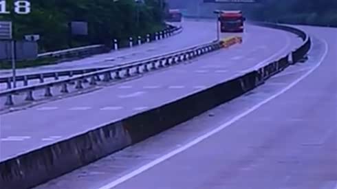 监控实拍:油罐车司机疲劳驾驶 撞毁护栏70米 损失惨重...