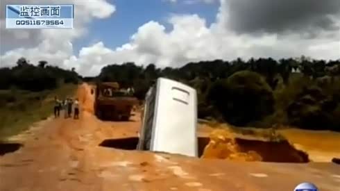监控实拍:太恐怖!巴西坑爹河坝 巴士陷坑掉河中...