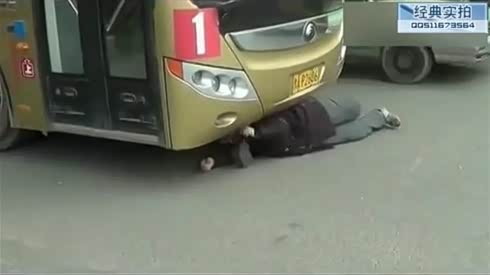 实拍:老人匍匐爬进公交车底“碰瓷”