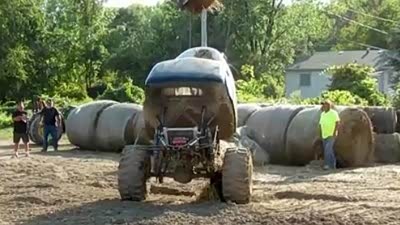 前轮被撞飞!改装怪物泥泞中猛撞草堆