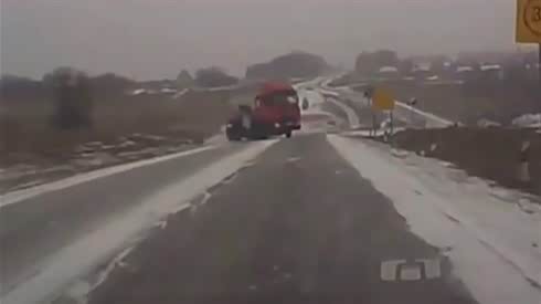 监控实拍:突遇失控大拖挂飞来 小车急躲闪 冲向田间地沟...