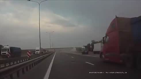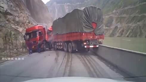 吓尿了!实拍SUV追尾货车-把货车撞出几十米